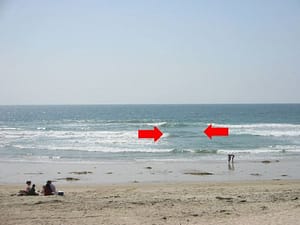 En Rip-strøm trekker deg bort fra stranden. Det er i og for seg ikke noe farlig med disse strømmene, siden de ikke trekker deg under, men det er hvordan du reagerer, som utgjør faren. Hvis du får panikk og prøver å svømme mot land blir du utslitt og vil mest sannsynlig drukne av strabasene.