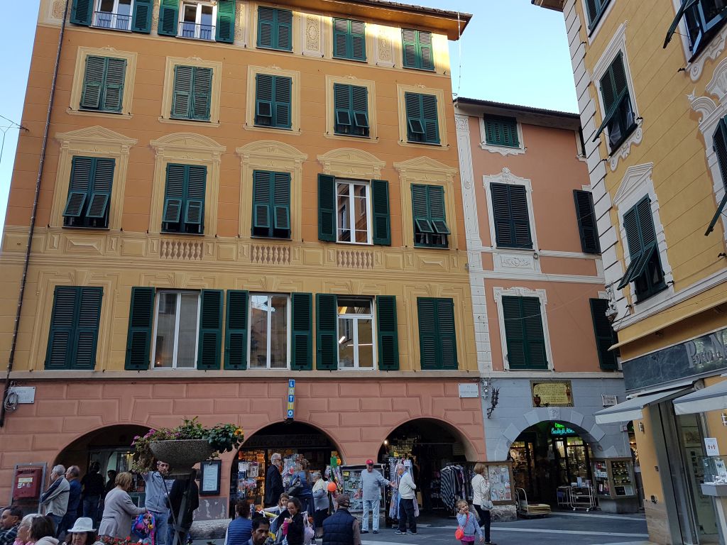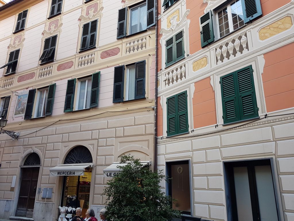 Det er en ting du virkelig må beundre, og det er spesielt for denne regionen Liguria i Italia. De slettpussede fasadene på byggene er påmalt «pynt» så det ser ut som om det er både vindusomramminger, ornamenter, belistning og mye mer.